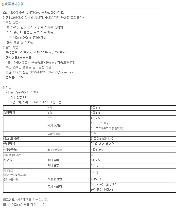 LOGIN JOIN 회사소개 인사말 연혁 조직구성 인정현황 수상이력 공평성보장선언문 오시는 길 교정 교정절차 및 지원서비스 교정이란? 측정의 소급성 교정수수료 및 교정주기 인정항목 교정가능 품목조회 온라인서비스 견적요청 실시간 진행상황 조회 상품판매 길이/측정공구 저울/수분측정기 전기/전자계측기 푸쉬풀/토크게이지 압력계 정밀측정장비 기준게이지 재료시험기 마이크로피펫/디스펜서 환경측정기 고객지원 공지사항 Q&A 자료실 교정 성적서 진위여부 확인 채용정보 FAQ 한국인정기구(KOLAS)인정 KS Q ISO/IEC 17025 국제공인교정기관 길이/측정공구 저울/수분측정기 전기/전자계측기 푸쉬풀/토크게이지 압력계 정밀측정장비 기준게이지 재료시험기 마이크로피펫/디스펜서 환경측정기 정밀측정장비 삼차원측정기 2D화상측정기 이차원측정기 형상측정기 조도측정기 조도/형상측정기 진원도측정기 제품명 BEYOND-CRYSTA 710 모델 BLN-C710 제조사 MITUTOYO 규격 제품상세설명 제품명 CNC COORDINATE MEASURING MACHINE 모델 CRYSTA PLUS 544 제조사 MITUTOYO 규격 제품상세설명 제품명 초 고정밀도 3차원측정기 모델 LEGEX707 제조사 MITUTOYO 규격 제품상세설명 12 계측기 판매