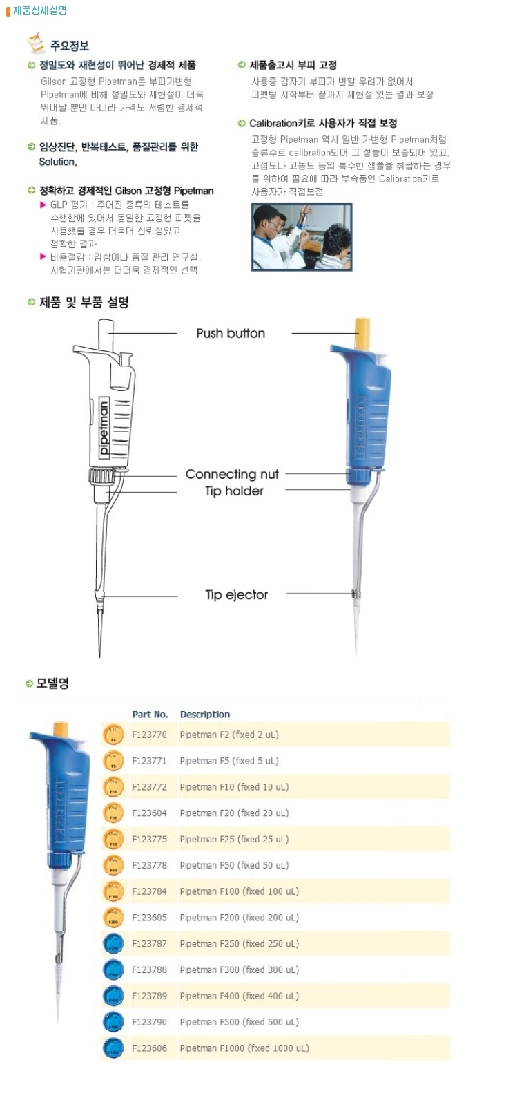 LOGIN JOIN 회사소개 인사말 연혁 조직구성 인정현황 수상이력 공평성보장선언문 오시는 길 교정 교정절차 및 지원서비스 교정이란? 측정의 소급성 교정수수료 및 교정주기 인정항목 교정가능 품목조회 온라인서비스 견적요청 실시간 진행상황 조회 상품판매 길이/측정공구 저울/수분측정기 전기/전자계측기 푸쉬풀/토크게이지 압력계 정밀측정장비 기준게이지 재료시험기 마이크로피펫/디스펜서 환경측정기 고객지원 공지사항 Q&A 자료실 교정 성적서 진위여부 확인 채용정보 FAQ 한국인정기구(KOLAS)인정 KS Q ISO/IEC 17025 국제공인교정기관 길이/측정공구 저울/수분측정기 전기/전자계측기 푸쉬풀/토크게이지 압력계 정밀측정장비 기준게이지 재료시험기 마이크로피펫/디스펜서 환경측정기 마이크로피펫/디스펜서 GILSON EPPENDORF HTL WITEG/BRAND NICHIRYO 제품명 마이크로피펫 모델 MICROMAN 제조사 GILSON 규격 제품상세설명 제품명 마이크로피펫 모델 PIPEMAN M MultiChannel 제조사 GILSON 규격 제품상세설명 제품명 마이크로피펫 모델 PIPETMAN F 제조사 GILSON 규격 제품상세설명 1234 계측기 판매